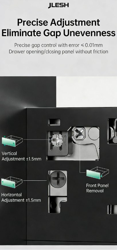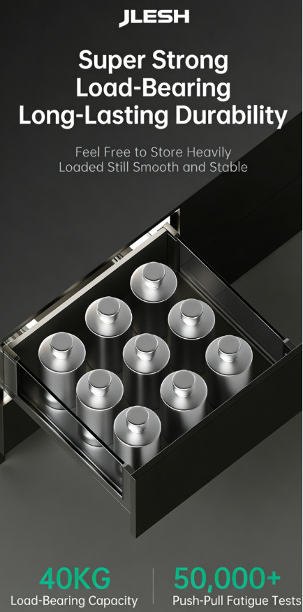 Full extension of soft close slides (can match with all types of slides, for example push to open/ push to open with soft close / push to open with bar)