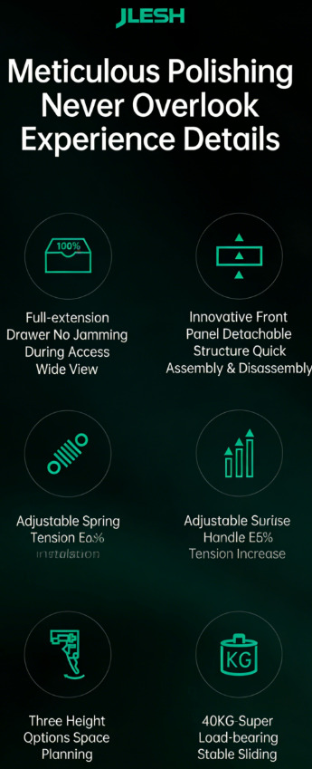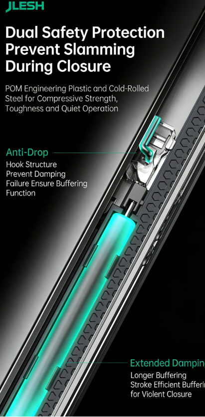 Full extension of soft close slides (can match with all types of slides, for example push to open/ push to open with soft close / push to open with bar)
