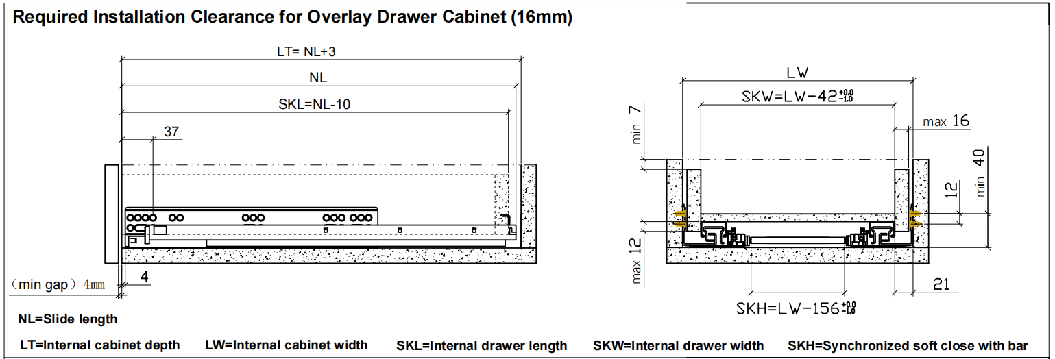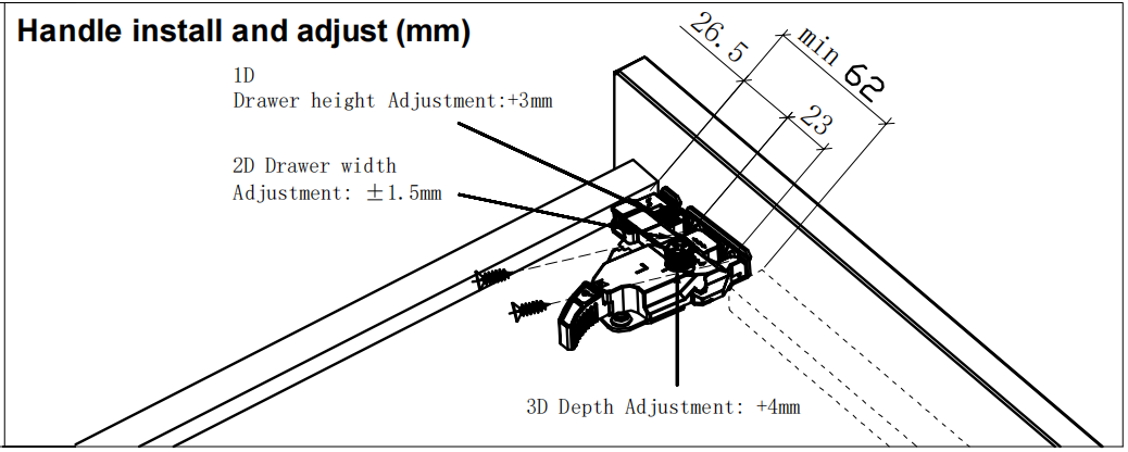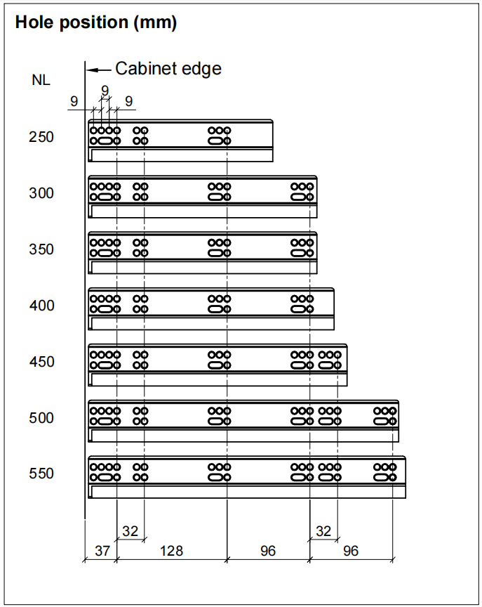 Full extension Loading Capacity: 35 kg. Drawer height adjustment: +3mm. Drawer depth adjustment: +4mm. Drawer width adjustment:±1.5mm. Package: 1 set/box; 6 sets/Carton.