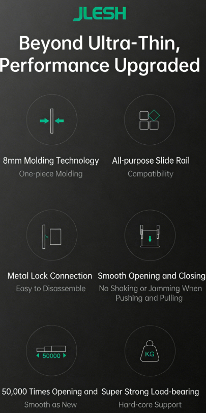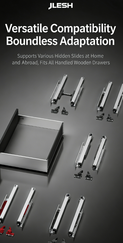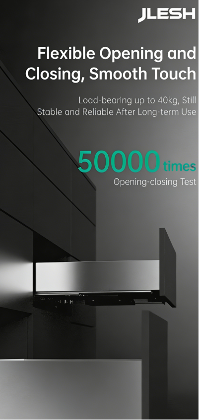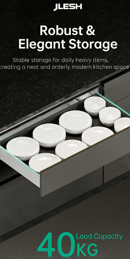 Full extension of soft close slides (can match with all types of slides, for example push to open/ push to open with soft close / push to open with bar)